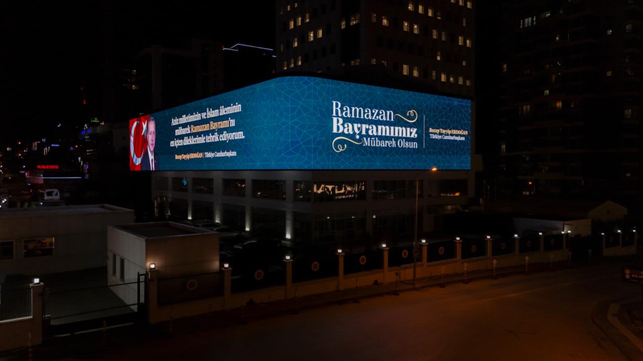 Cumhurbaşkanı Erdoğan’ın bayram mesajı İletişim Başkanlığı binasına yansıtıldı