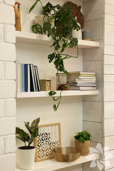 Köşe bitkileri: Yamuk köşelere yerleştirilen bitkiler, boş alanları doldurarak odaya sıcaklık katar.